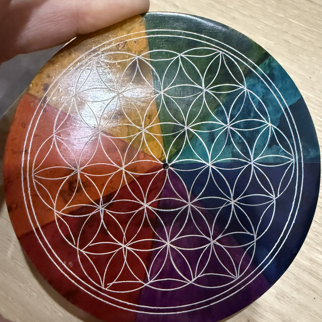 Plaque de rechargement et porte encens en seatite 7 chakras et fleur de vie